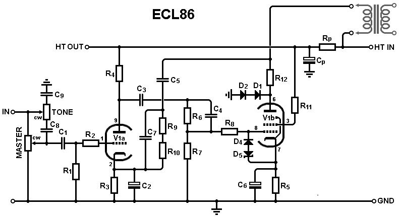 It is designed to accept an ECL86 / PCL86 / 6GW8 / 14GW8 triode-pentode, commonly used in old stereos, radios, and some small guitar amps.